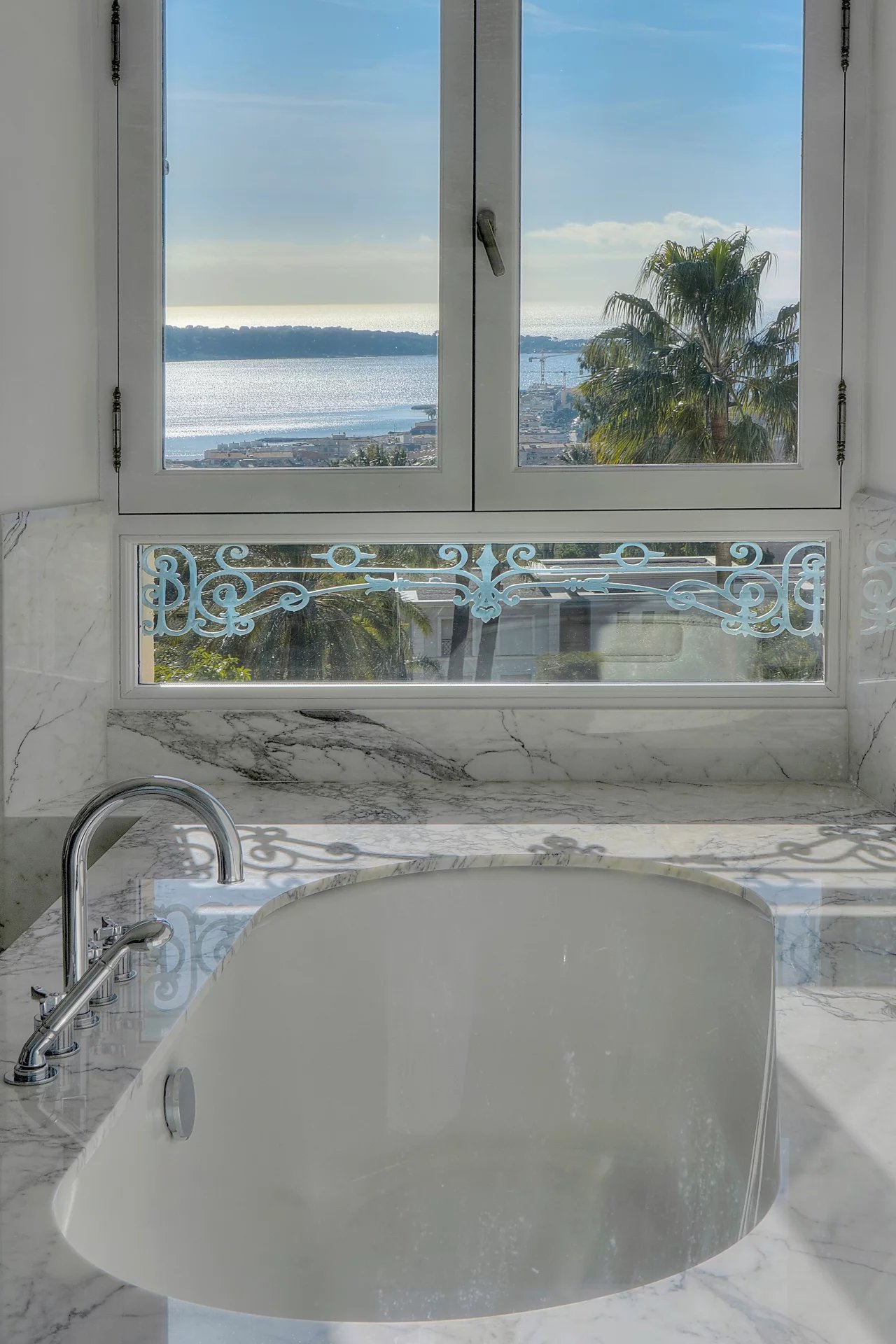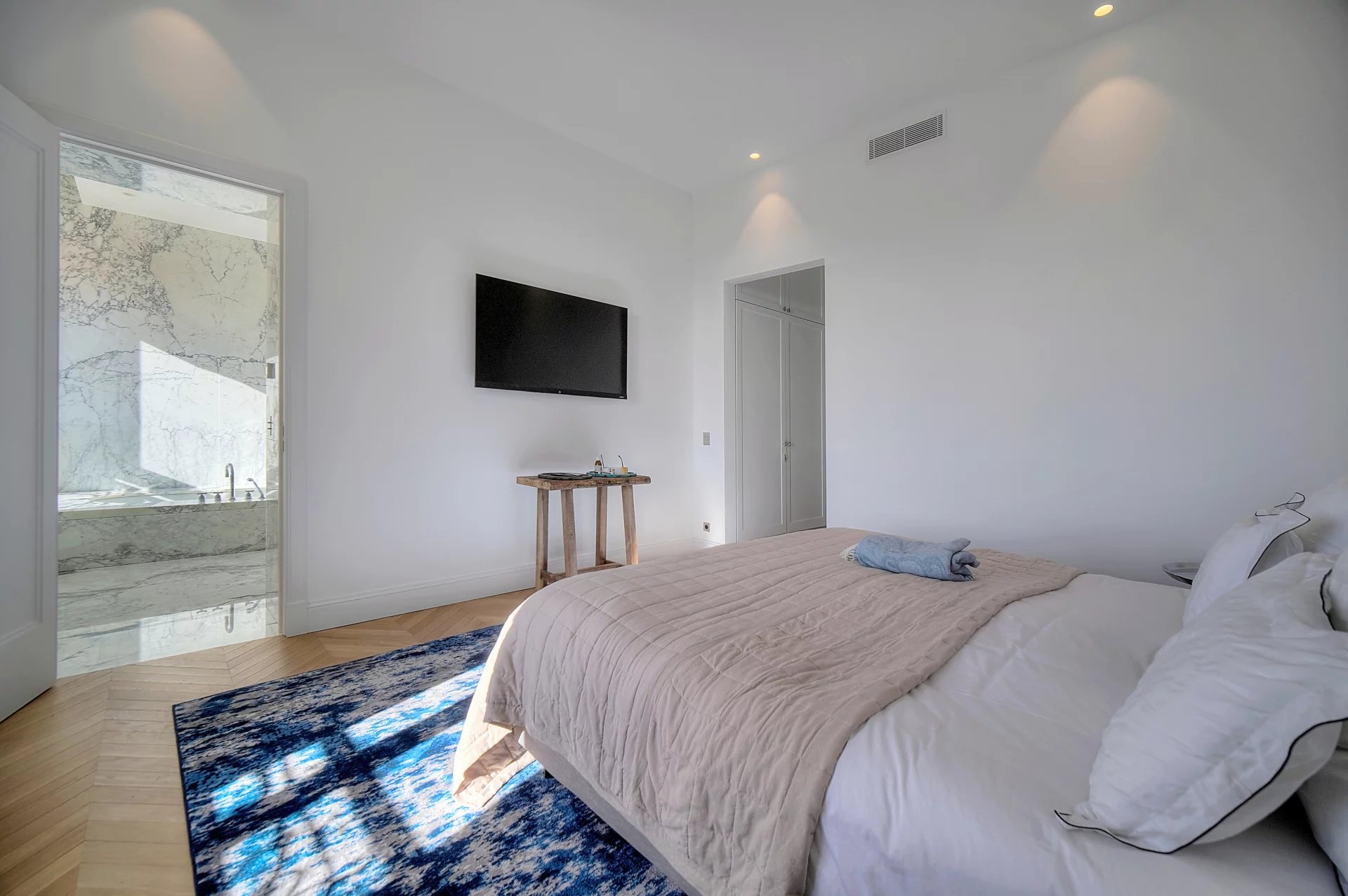 Recently renovated to a high standard, the apartment comprises a spacious, bright living room with dining area opening onto a balcony with magnificent panoramic sea views, a fully-equipped open-plan kitchen, three bedrooms with en-suite bathrooms and a laundry room.