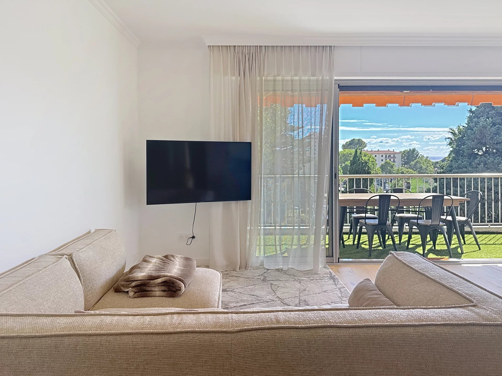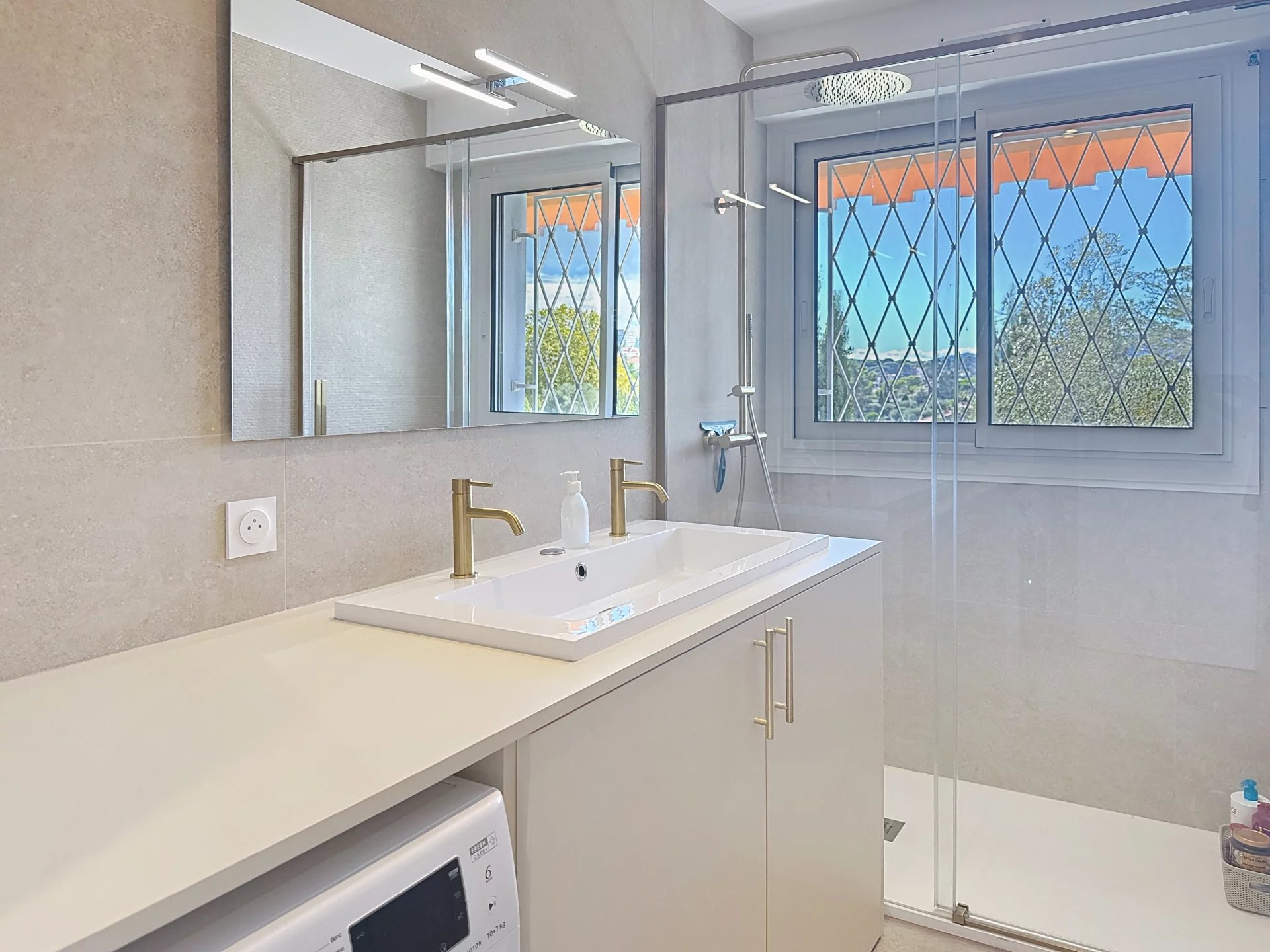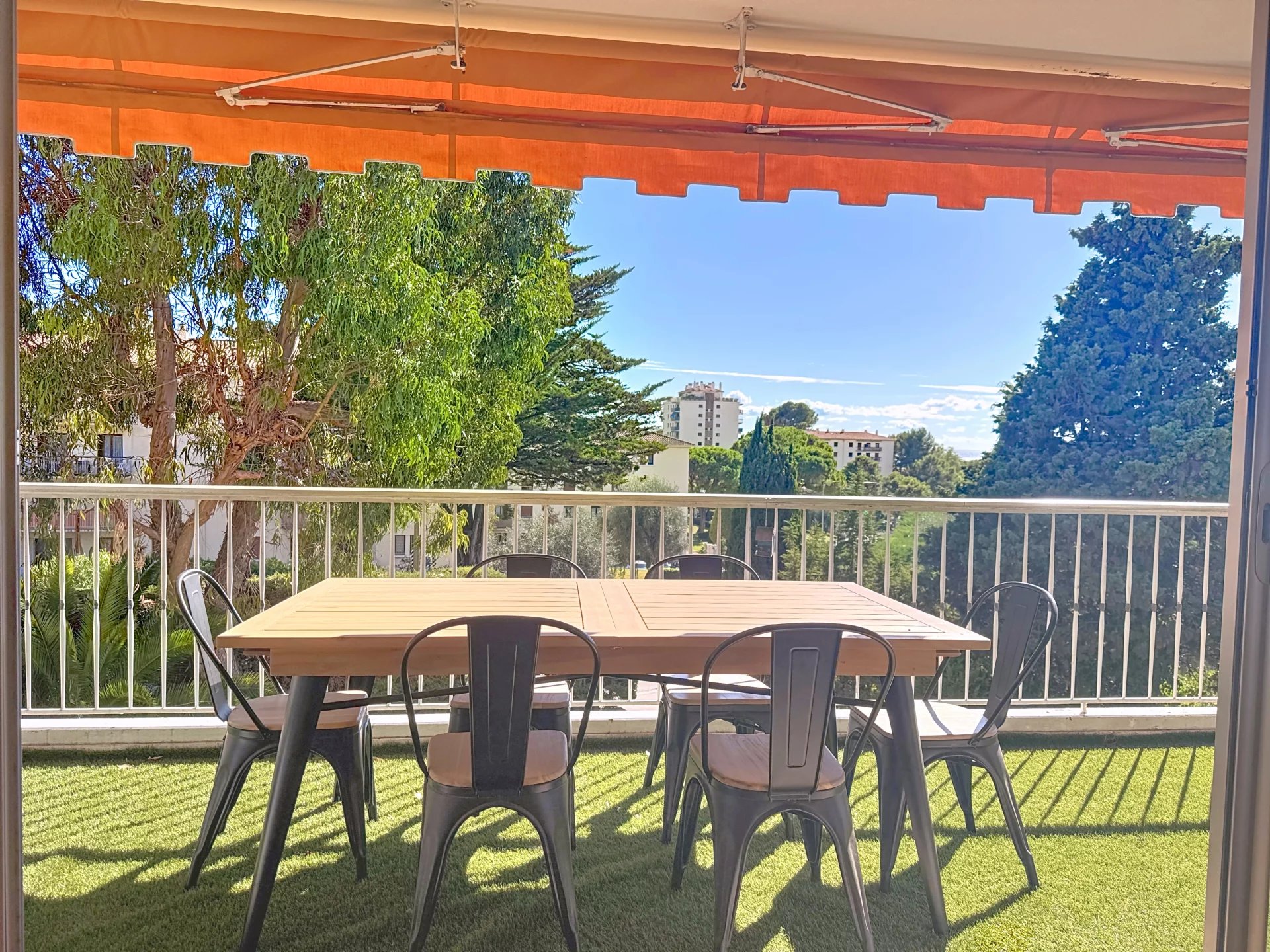 Vous serez séduit par sa superbe terrasse d’angle d’environ 25 m², exposée sud et ouest, offrant une belle vue dégagée sur les collines et un aperçu mer.
