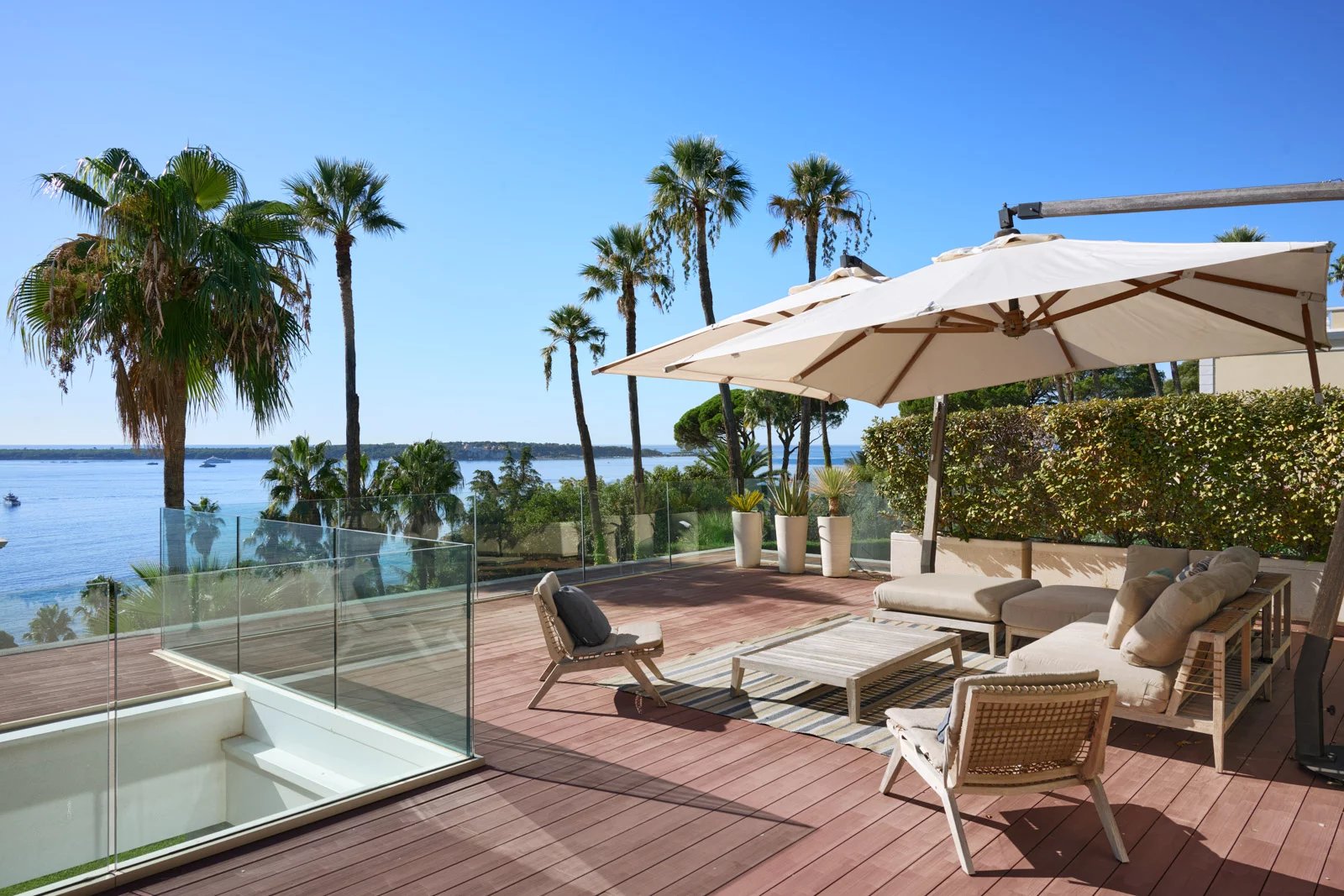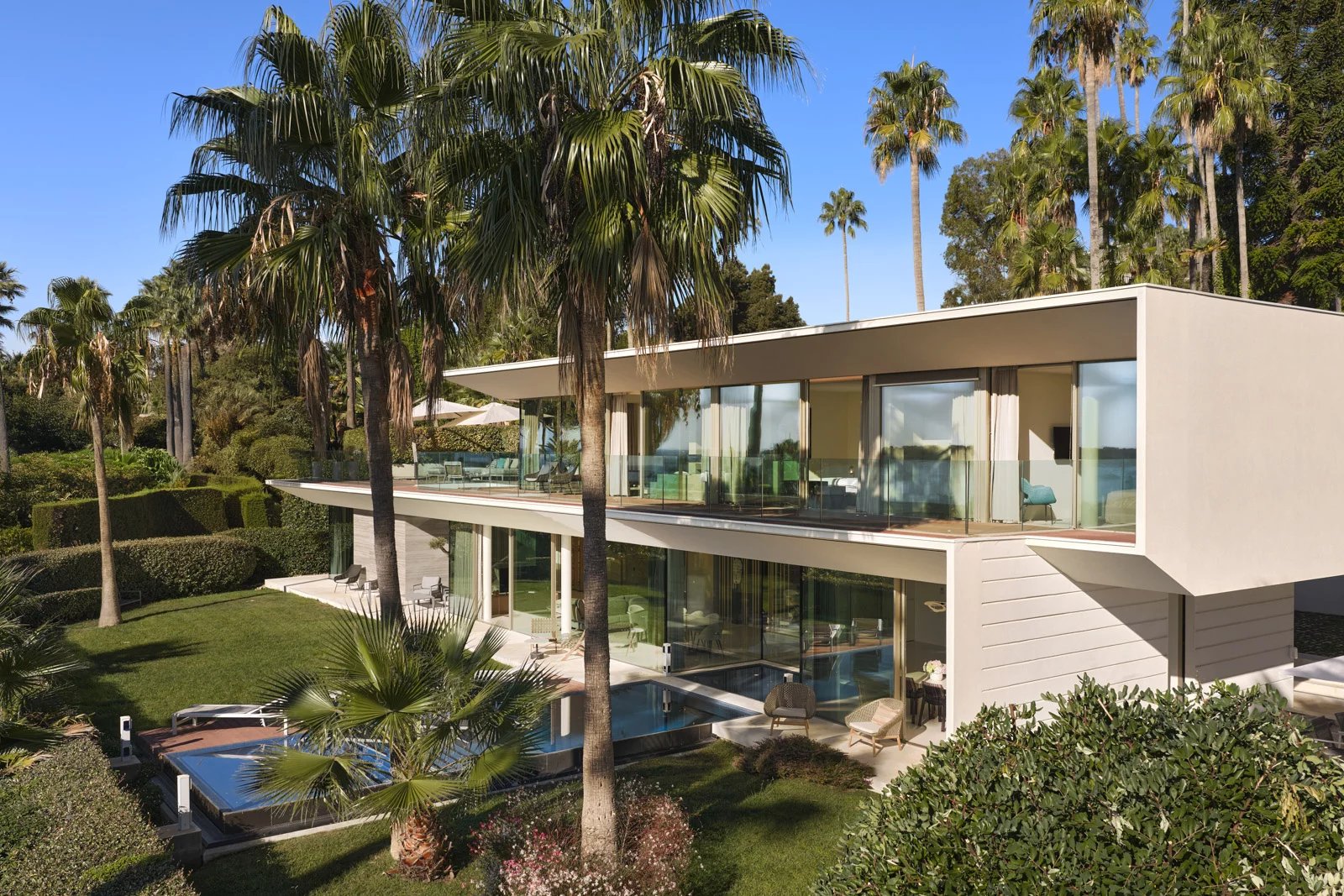 Située dans l'un des plus prestigieux domaines sécurisés du secteur de la Basse Californie, à proximité immédiate de la Croisette, des plages et des commerces, cette somptueuse villa contemporaine profite d’une vue spectaculaire sur la mer Méditerranée.